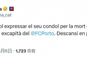 巴薩在其官方社交媒體上寫道:“巴塞羅那足球俱樂部對(duì)波爾圖體育總監(jiān)、前隊(duì)長(zhǎng)若熱-科斯塔的去世表示沉痛哀悼,愿他安息?!?/p>