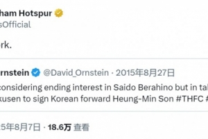 知名記者David Ornstein在2015年夏窗社媒發(fā)文,透露熱刺正在商談引進(jìn)勒沃庫(kù)森前鋒孫興慜,不過(guò)當(dāng)時(shí)一些球迷并不看好這筆簽約。