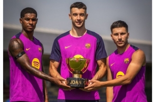 巴薩官方更新社媒動態(tài),曬出三位新援拉什福德、霍安-加西亞、巴德吉手捧甘伯杯獎杯的合照,配文:“為主場首秀做好準(zhǔn)備?!?/p>