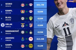 體育資訊8月9日訊 曼聯(lián)官方宣布塞斯科加盟,固定轉(zhuǎn)會費(fèi)7650萬歐。德轉(zhuǎn)也盤點(diǎn)了歷史上斯洛文尼亞球員轉(zhuǎn)會費(fèi)榜單,其中塞斯科高居榜首,具體如下: