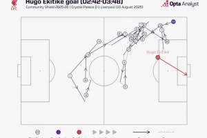 體育資訊8月10日訊 在社區(qū)盾杯決賽利物浦對陣水晶宮的比賽中,埃基蒂克開場不到4分鐘破門。