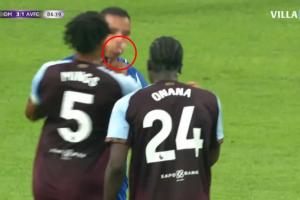 奧納納當(dāng)時(shí)突然捂住自己的臉,轉(zhuǎn)身看向本場比賽的法國裁判米洛特。隨后明斯上前抓住格林伍德球衣,格林伍德球衣在沖突中被扯爛。