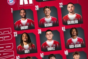 拜仁替補(bǔ):26-烏爾賴希、48-克拉納克、2-于帕梅卡諾、4-若納坦-塔、6-基米希、8-格雷茨卡、9-凱恩、14-迪亞斯、17-奧利塞、27-萊默爾、36-維斯多姆-麥克、44-斯坦尼西奇
