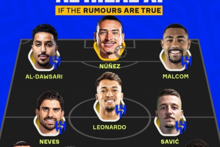 中場:內(nèi)維斯、萊昂納多、米林科維奇