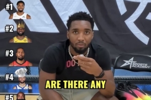 米切爾:“前五?我肯定會把自己的綽號排在第一。國王詹姆斯、KD(杜蘭特)、大廚庫里、胡子哈登、MJ(喬丹)?!?/p>