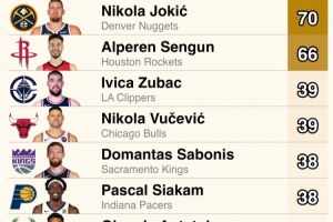 上賽季NBA自投自搶進(jìn)攻籃板數(shù)排名(沒(méi)有被封蓋的情況下)
