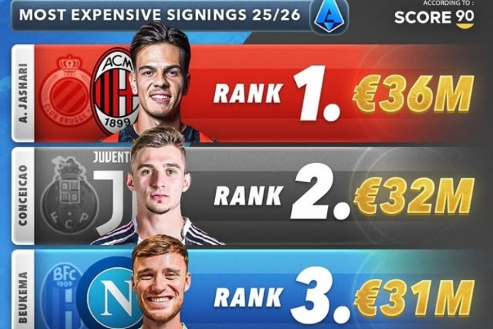 1、亞沙里,布魯日斯→米蘭,3600萬歐