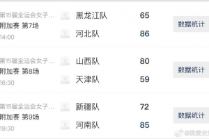 今天全運(yùn)會(huì)女籃成年組附加賽繼續(xù)在安徽合肥進(jìn)行,其中山西拿下天津,成為最后一支晉級(jí)決賽圈的球隊(duì)。這樣附加賽全部結(jié)束,河南、新疆、山西成功晉級(jí)全運(yùn)會(huì)女籃決賽圈。