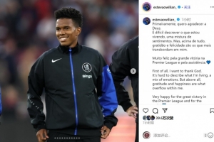埃斯特旺此役為切爾西首發(fā)出戰(zhàn),送出助攻,并當選本場比賽最佳球員。賽后他在社交媒體上寫道:“首先,我想感謝上帝。 很難描述我現(xiàn)在的感受,各種情緒交織在一起。但最重要的是,我內心充滿了感恩和快樂。