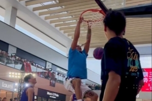 體育資訊8月23日訊 在中國行鄭州站活動(dòng)現(xiàn)場,阿隆-戈登各種秀扣籃。