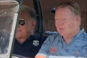 體育資訊6月27日訊 《世界體育報》曬出視頻,巴薩主席拉波爾塔與前主帥科曼一起打高爾夫。
