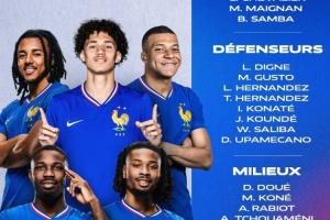 前鋒:阿克利烏舍(摩納哥)、巴爾科拉(巴黎)、謝爾基(曼城)、登貝萊(巴黎)、姆巴佩(皇馬)、奧利塞(拜仁)、圖拉姆(國(guó)米)