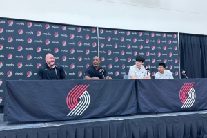 體育資訊6月28日訊 開拓者為楊瀚森舉行新聞發(fā)布會(huì),主帥比盧普斯與總經(jīng)理喬-克羅寧一同出席。