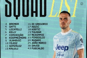 體育資訊8月30日訊 北京時(shí)間9月1日凌晨1點(diǎn),意甲第2輪,尤文將在客場(chǎng)對(duì)陣熱那亞。比賽開始前,尤文官方發(fā)布了球隊(duì)大名單,布雷默坐鎮(zhèn)后防,伊爾迪茲領(lǐng)銜鋒線,弗拉霍維奇入選。