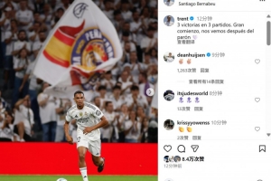 皇馬新援阿諾德也在社媒曬出本場(chǎng)照片,配文寫道:“3場(chǎng)比賽3場(chǎng)勝利,這是好的開始,讓我們?cè)趪H比賽日之后再見!”