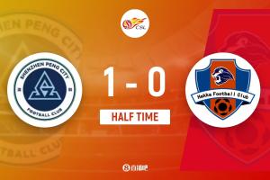 上半場比賽結(jié)束,深圳新鵬城主場暫時(shí)1-0領(lǐng)先梅州客家。