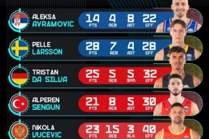 體育資訊9月2日訊 男籃歐錦賽結束了又一個比賽日的爭奪,今天,歐錦賽官推曬出了昨日的球員高光表現(xiàn)。