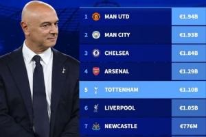 列維01年入主熱刺至今轉(zhuǎn)會(huì)凈支出11億歐,同期英格蘭球隊(duì)第五