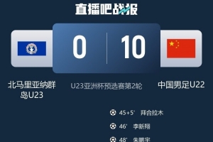 體育資訊9月6日訊 U23亞洲杯預(yù)選賽小組賽第2輪,U22國足以10-0的比分擊敗北馬里亞納群島U23,下輪將和澳大利亞U23爭(zhēng)奪小組頭名。