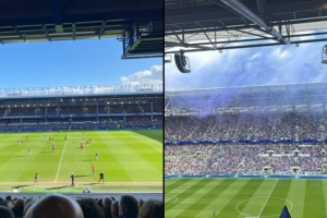 我們現(xiàn)場已經(jīng)在新球場進行了幾場比賽,讓我們看看希爾-狄金森球場與之前古迪遜公園球場的視野相比如何。