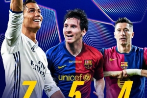 能追平梅西嗎?萊萬4次單賽季歐冠進(jìn)球上雙,C羅7次、梅西5次