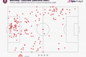 據(jù)統(tǒng)計(jì),伯恩利在本場(chǎng)比賽下半場(chǎng)沒有一次在利物浦禁區(qū)內(nèi)觸球,而利物浦則有41次對(duì)手禁區(qū)觸球,最后一次就是薩拉赫的點(diǎn)射絕殺。