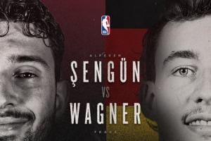 在賽前預(yù)熱時(shí),NBA給出的海報(bào)上是兩隊(duì)的箭頭人物——申京和小瓦格納;