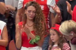 體育資訊9月16日訊 男籃歐錦賽決賽土耳其83-88不敵德國,賽后奧斯曼妻嬌妻場(chǎng)邊灑淚,女兒也情緒低落,奧斯曼趕緊上前安慰。