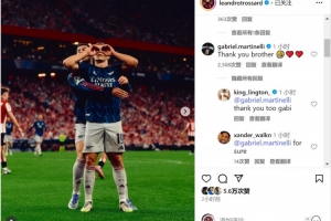 互相助攻!馬丁內(nèi)利和特羅薩德社媒互相致謝