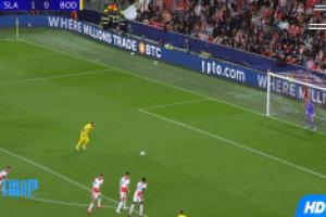 比賽第54分鐘,博德閃耀獲得一個點球,但霍格主罰的點球被布拉格門將斯坦尼克神勇?lián)涑觯e失扳平比分的良機!
