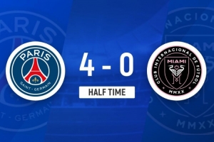 上半場比賽結(jié)束,巴黎圣日耳曼暫時(shí)4-0領(lǐng)先邁阿密國際。