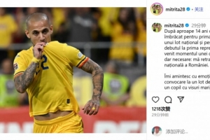 米特里策在社媒寫道:“在首次穿上國家隊(duì)球衣近14年、完成一線隊(duì)首秀逾7年之后,我迎來了一個(gè)艱難卻必要的決定:從羅馬尼亞國家隊(duì)退役。