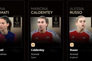 體育資訊09月23日訊 2025年金球獎公布,邦馬蒂奪得女足金球獎,卡爾登泰獲第二,魯索第三。