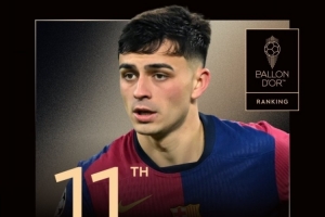 體育資訊9月23日訊 2025年金球獎(jiǎng)排名出爐,巴薩中場(chǎng)佩德里排在第11位。