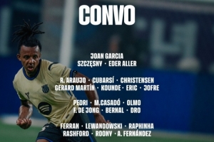 巴薩客戰(zhàn)奧維耶多大名單:萊萬(wàn)領(lǐng)銜鋒線(xiàn),亞馬爾缺席小將德羅在列
