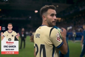 打進(jìn)扳平進(jìn)球,埃里克-加西亞當(dāng)選巴薩3-1客勝奧維耶多全場(chǎng)最佳