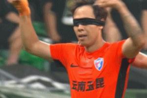 體育資訊06月30日訊 中超第16輪,北京國安vs云南玉昆。比賽第29分鐘,葉楚貴破門,云南玉昆客場1-0領(lǐng)先北京國安!進(jìn)球后葉楚貴上演拉眼罩式慶祝。