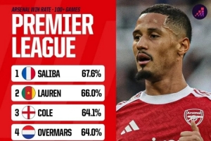 體育資訊10月1日訊 根據(jù)統(tǒng)計(jì),在為阿森納出戰(zhàn)超過100場英超的球員中,薩利巴勝率最高,達(dá)到67.6%,這位法國中衛(wèi)已與俱樂部續(xù)約至2030年。