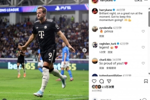 賽后凱恩也在個人社媒曬出慶祝進球照片,配文寫道:“精彩的夜晚,球隊勢頭不錯,讓我們繼續(xù)延續(xù)下去!”
