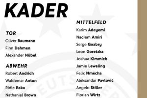 德國名單:沃爾特馬德、維爾茨領(lǐng)銜 基米希、努貝爾在列 薩內(nèi)落選