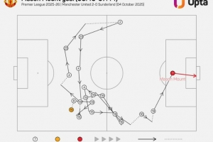 據(jù)統(tǒng)計(jì),芒特進(jìn)球前經(jīng)過18次傳球,這是本賽季英超進(jìn)球中最多,而曼聯(lián)上一次進(jìn)球前有如此多傳球還在2023年9月(B費(fèi)進(jìn)球)。