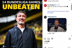 11勝3平!德甲官方曬科瓦奇海報:率領(lǐng)多特跨賽季14輪德甲不敗
