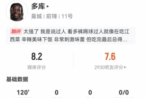 體育資訊7月1日訊 利雅得新月在世俱杯16強戰(zhàn)4-3淘汰曼城,多庫本場數(shù)據(jù)如下: