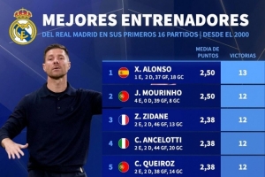 體育資訊10月10日訊 德國(guó)轉(zhuǎn)會(huì)市場(chǎng)統(tǒng)計(jì)了2000年以來(lái)皇馬主帥前16場(chǎng)比賽的勝利場(chǎng)次,并列出榜單,阿隆索13勝居首,穆里尼奧、齊達(dá)內(nèi)、安切洛蒂12勝。