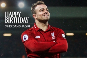 利物浦官方社媒曬出沙奇里的生日海報,配文:“生日快樂,沙奇里?!?/p>