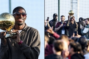 法國足協(xié)曬照,登貝萊回到成長之地埃夫勒,向家鄉(xiāng)人民展示了他的金球獎。