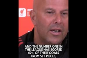 斯洛特表示:“如果你告訴我,我們40%的失球都來自定位球,而聯(lián)賽第一60%的進球都來自定位球,但我們卻只落后他們一分,我大概會覺得,‘這情況也沒那么糟’。當(dāng)然,對于一支志在競爭的球隊而言,丟四個(定位)球顯然太多了?!?/p>