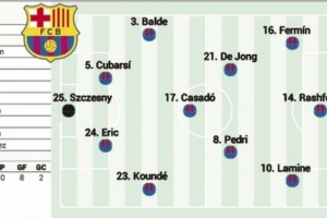 體育資訊10月18日訊 北京時間今天晚上,巴薩將在西甲第9輪比賽中主場對陣赫羅納,巴薩多名進攻端球員無法出戰(zhàn)此役,《阿斯報》預測了巴薩本場比賽的首發(fā)陣容。