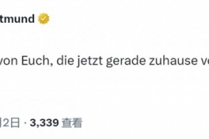 多特官方更新社媒動態(tài),致敬在歐洲觀看比賽的球迷:“向此刻正坐在家中通過各種設備觀看直播的各位致敬,凌晨3點,你醒著嗎?”