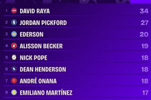 體育資訊10月19日訊 據(jù)統(tǒng)計(jì),阿森納門將拉亞自2023/24賽季加盟球隊(duì)以來,在英超聯(lián)賽中的表現(xiàn)極具統(tǒng)治力。